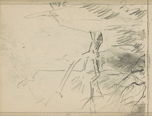 Curator: Before us, we see "Landschap met bomen", or "Landscape with Trees", created sometime between 1848 and 1888, courtesy of Anton Mauve. It's rendered in graphite pencil on paper and currently resides here at the Rijksmuseum. Editor: Immediately, I am struck by the starkness, the raw energy in these lines. It feels like a glimpse into the very soul of the landscape, rendered in its most elemental form. There is a quiet but assertive quality to the organic shapes. Curator: That's interesting. Considering Mauve's influence within the Hague School, we must contextualize his art as a representation of Dutch rural life. The drawing on paper itself democratizes artistic creation, diverging from established practices towards wider cultural access. This challenges the elite nature of art institutions. Editor: Absolutely. Moreover, consider how the focus on nature, and trees particularly, has often symbolized strength and endurance across different cultures. I see hints of resistance here – these gnarled branches fighting against an unseen force, resonating perhaps with contemporary discussions around environmental struggles and the resilience of marginalized communities against capitalist forces. Curator: I appreciate your reading. But I believe that this landscape could reflect back to social circumstances experienced at the time, when agricultural landscapes were enduring transformations, influencing rural existence. Here, Mauve’s creative exploration may underscore not only resilience but also community adaption towards broader transformation of power systems affecting lived experiences. Editor: I'd counter that artistic statements, even those emerging from specific temporal contexts, gain multilayered significance across history, reflecting ongoing battles against domination. Perhaps Mauve might have wished to draw broader associations. Curator: While there are certainly interpretations possible, it's worth investigating how these drawings informed future landscapes and perhaps stimulated environmental sensitivity during increasing urbanization at the time. Editor: True, it gives me a lot to reflect on in my work. Thank you! Curator: And to me, it is invaluable contextualization of the impact on landscape paintings influencing future creative generations.