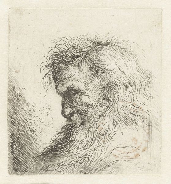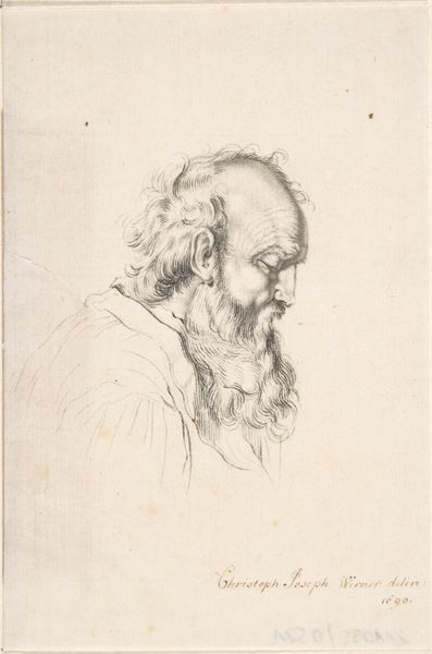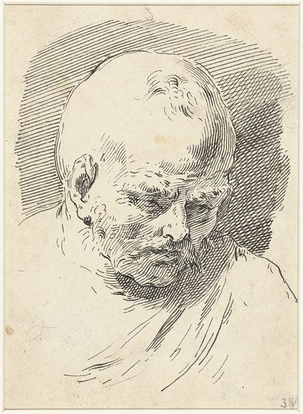 This is a sketch by Stefano della Bella, an Italian printmaker who lived in the 17th century, depicting the head of an old, bald man with a beard. Here we have a motif of the wise, old man, a figure that stretches back into the depths of human history. This archetype appears in numerous cultures across time, from ancient philosophers to religious figures. The beard itself is a symbol. The image is one that evokes not just age, but also wisdom, experience, and perhaps even a connection to the divine. We see his gaze turned downwards. This is an attitude of reflection. It is the weight of years etched into his features. This image touches something primal within us, a recognition of mortality and the passage of time, engaging us on a subconscious level. The cyclical progression of this symbol has resurfaced, evolved, and taken on new meanings in different historical contexts.