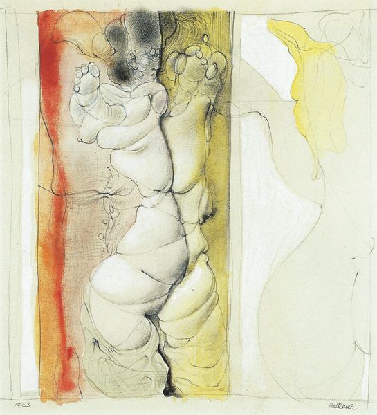 Auguste Rodin made this drawing on paper with watercolor, a medium often seen as preparatory, a sketch on the way to something grander. But look closer. The figures are outlined with a delicacy that echoes his sculptural practice, as though he’s carving into the page itself. The subtle washes of color, barely there, emphasize the artist's touch, a deliberate and sensual act of creation. The watercolor bleeds into the paper, imbuing it with warmth and vitality. Rodin challenges the hierarchy between drawing and sculpture, between the sketch and the finished artwork. This piece invites us to reconsider the artistic process itself, to see the value in the handmade, in the intimate connection between artist, material, and idea. It demonstrates Rodin's radical approach that elevated the status of the fragment to the level of high art.