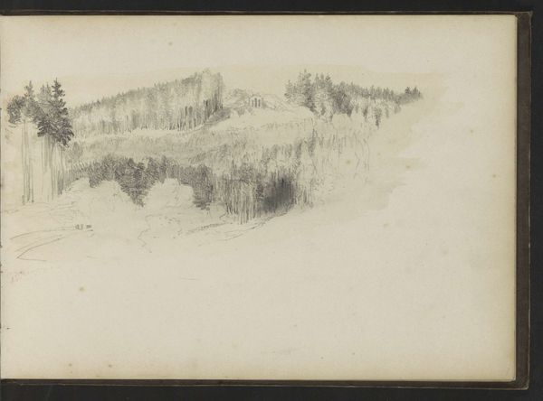 This is "Boslaan van Berg en Dal naar Kleef", a pencil drawing by Johannes Tavenraat, held at the Rijksmuseum. The subdued grey palette and soft shading work to create a tranquil atmosphere, inviting the viewer into a serene woodland setting. The lines defining the trees and the path are delicate, almost tentative. The composition uses a receding perspective, drawing the eye along the road as it narrows into the distance, framed by the verticality of the trees. Tavenraat’s approach to the landscape is evocative rather than documentary. It is less about capturing a specific place, and more about conveying an emotional experience of nature. The drawing prompts us to consider how the structure of a landscape, its lines and forms, can communicate a sense of depth, quietude, and perhaps even a touch of melancholy. It's through these formal elements that Tavenraat shapes our understanding of space and our emotional response to it.