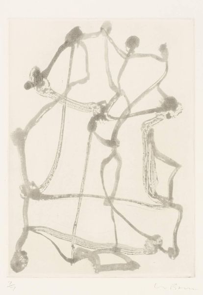 Koshiro Onchi made "Leaf and Cloud (Poem No. 22)" using woodblock printmaking, a technique deeply rooted in Japanese artistic tradition. Onchi was a central figure in the sosaku-hanga movement which began in the early 20th century and promoted the idea of "self-prints," where artists controlled every stage of printmaking. This work reflects the movement's emphasis on individual expression, departing from the more commercial and collaborative nature of earlier ukiyo-e prints. The abstract shapes and natural elements evoke a sense of personal connection with nature, a theme common in Japanese art and culture, yet rendered here with a distinctly modern sensibility. To fully appreciate Onchi's work, it's crucial to explore the historical context of early 20th century Japanese art, examining the social and artistic debates surrounding tradition, modernity, and individual expression. We might look to period writings by Onchi and his contemporaries, along with museum collections and archives dedicated to the sosaku-hanga movement. Through this, we recognize art's capacity to both reflect and challenge its time.