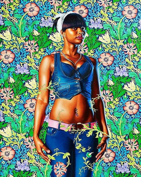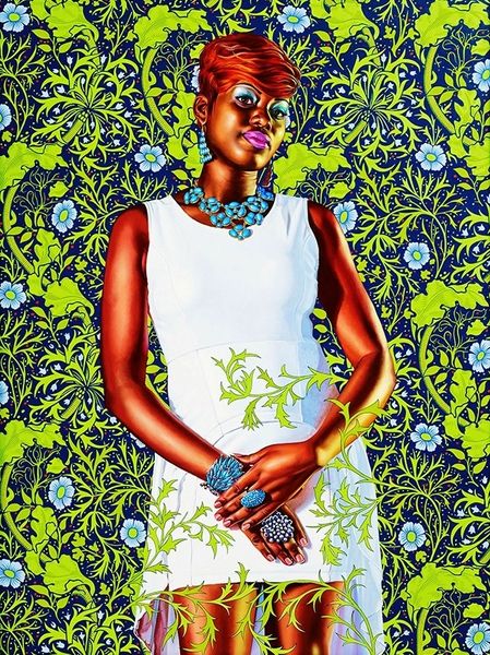 Kehinde Wiley crafted this compelling portrait, Polish Woman, imbuing it with layers of cultural and historical significance. Dominating the scene is a luxuriant pattern of flora, immediately evoking a sense of the exotic and the organic. This verdant backdrop serves as a vibrant stage upon which the figure is set, reminiscent of how the Flemish masters used textiles. Historically, floral patterns have symbolized fertility, growth, and the ephemeral nature of life. But here, these symbols are boldly reinterpreted, challenging conventional notions. The vines intertwining around the figure evoke the classical motif of the embracing vine, often associated with Bacchus, the god of wine and ecstasy. Yet, in this context, the vine becomes an emblem of resilience and reclamation, winding its way through contemporary identity. The emotional depth lies in how Wiley invites us to reconsider these timeless symbols. They resurface, evolve, and take on new meanings, in the ever-repeating cycles of history.