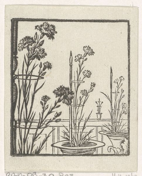 Curator: Let's turn our attention to this captivating print from 1661 by Dirck de Bray, entitled "Tulp in bloei," which translates to "Tulip in Bloom". Editor: It's strikingly simple. The heavy black lines of the woodcut give it a somber quality, almost meditative, despite depicting a flower. The droop of the single blossom feels weighty. Curator: That's interesting. The tulip, during the Dutch Golden Age, became associated with the transience of beauty, excess, and a reminder of mortality in the face of the infamous Tulip Mania. Editor: Of course, that resonates! You can see the symbol of “memento mori” at work. The almost skeletal, bare presentation mirrors this underlying concept, acting as a reminder about life’s ephemeral qualities. Even the earth it grows from looks bleak and barren. Curator: De Bray himself lived through periods of both financial prosperity and severe financial hardship, which would certainly inform his views on excess. Given that some scholars link Dutch flower paintings with prosperity and national identity in a globalizing world, this rendering in printmaking perhaps makes it more widely accessible and democratizes access to an affluent object of status, no? Editor: I think that reading has legs. A single flower rendered starkly like this… almost a photographic negative in some ways… becomes universal. Stripped of opulent color, the meaning shifts to wider themes of beauty and life’s precariousness, independent of monetary privilege. The contrast between what was, what is, and what will be can make you really feel the precarity of existence. Curator: And it invites conversations about environmentalism as well, particularly given the exploitation of nature during that period, and ours. Thank you, that’s quite the way to look at a humble plant, I am glad to hear your take. Editor: My pleasure. I find its haunting, stripped-down nature lingers in my mind long after I turn away, something more than just botanical art.