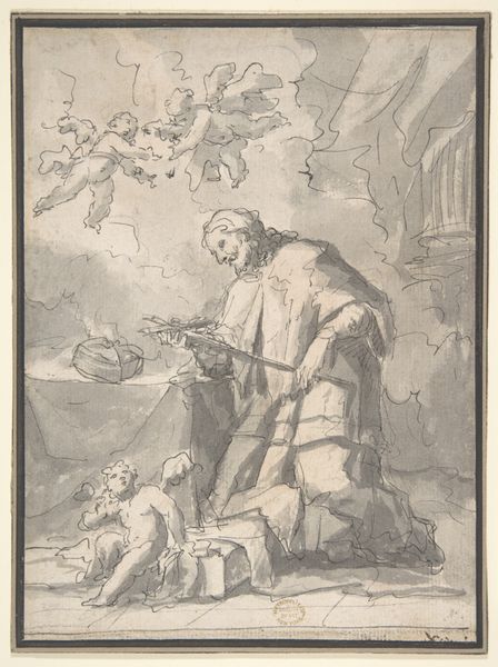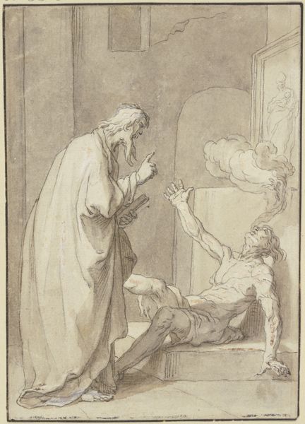Abraham Bloemaert made this pen and wash drawing, Christ heals the lame, sometime in the late 16th or early 17th century. Bloemaert, a Dutch artist, lived through a time of great religious upheaval, and this drawing reflects the increasing interest in personal piety and the role of Christ as a healer and comforter. The image uses visual codes familiar from earlier art, but here they are used to convey a new sense of intimacy. We see Christ healing a man, not in a grand public setting like earlier depictions of biblical scenes, but rather in an informal encounter outside a humble dwelling. This focus on the everyday resonates with the Protestant Reformation's emphasis on individual faith. For us today, this image offers insight into the changing social and religious attitudes of the Netherlands during this period. To understand it more fully, we might consult religious texts, social histories, and records from the Dutch Reformed Church. These sources can help us to appreciate the changing role of art in society, and the ways in which artists like Bloemaert responded to the needs and concerns of their time.