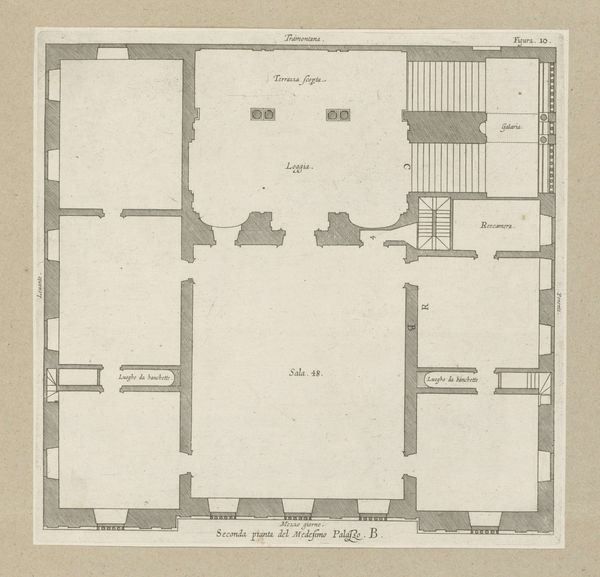 Nicolaes Ryckmans created this ink drawing, titled "Floor Plan of the Ground Floor of the Villa Giustiniani-Cambiaso in Genoa," sometime in the 17th century. This floor plan offers us a window into the spatial organization and social dynamics of a wealthy Genoese family's residence. The symmetrical layout, with its grand entrance, suggests a concern for appearances and the projection of power. It is not merely a functional arrangement, but a carefully orchestrated performance of status. Genoa, a maritime republic, was a hub of trade and finance during this period. This economic prosperity likely fueled the construction of elaborate villas like this one. Architectural drawings like this one would have been important tools, both for the families who commissioned these buildings and for the architects who designed them. To understand the drawing fully, architectural historians consult period documents, such as estate inventories and social histories. This provides a richer understanding of the cultural significance of spaces and the lives of those who inhabited them.