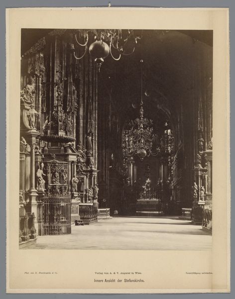 This photograph captures a view inside the Sacramentskapel of the Sint-Janskathedraal in Den Bosch. Though the photographer is unknown, we can situate this image within the broader context of architectural photography and its role in documenting and preserving cultural heritage. This image invites us to reflect on the power structures embedded in religious institutions and their visual representation. The Catholic Church, historically a dominant force, has shaped much of Western art and architecture. How do these grand spaces and the figures within them, often male saints or biblical figures, influence our understanding of power and identity? What stories and perspectives are left out of these traditional narratives? Consider how photography, as a medium, democratizes access to these spaces while also potentially reinforcing their grandeur and authority. This image serves not just as a visual record, but also as a prompt to question the stories we tell about history, religion, and ourselves.