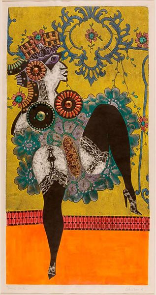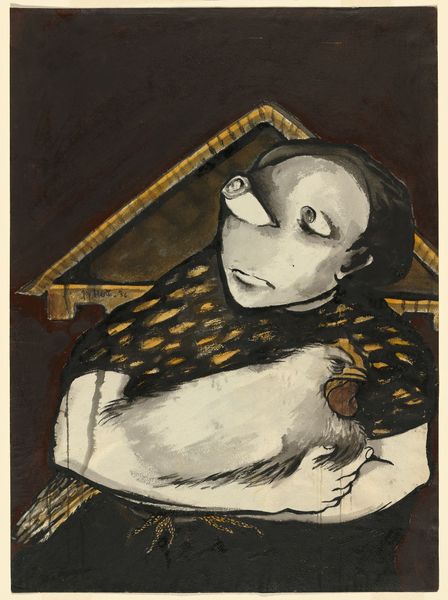 Curator: Today, we are looking at "Black Matriarch," a painting by Clementine Hunter, created around 1970. Editor: My initial response is quite powerful. The stark contrast of the black silhouette against the pale background, paired with the bold, colorful head wrap, it just immediately grabs your attention. Curator: It's quintessential Hunter, isn’t it? The composition is deceptively simple, but Hunter masterfully represents African American life through her distinctive style and limited palette. Editor: The flat perspective and vibrant colors certainly point toward her 'naive art' approach. And the 'matriarch' title carries so much weight. Given that it was painted in 1970, how might the social and political context of the Black Power movement be relevant? Curator: Absolutely. It's crucial to acknowledge the broader context. Clementine Hunter lived and worked at Melrose Plantation in Louisiana, and her paintings offer invaluable glimpses into plantation life from the perspective of a Black woman. Editor: I'm curious about her artistic training – or the lack thereof. To what extent did this self-taught nature influence her distinctive style and subject matter? Curator: Hunter didn't begin painting until she was in her 50s and she embraced a 'naive' or self-taught style. Her work captures scenes from daily life like picking cotton and washing clothes, but they also reflect her strong sense of community. Editor: The head wrap really stands out for me. Is this simply decorative or is there more meaning? The patterns remind me a lot of the african head wraps women still wear to this day as symbols of beauty and self expression. Curator: Headwraps were—and continue to be—powerful symbols of identity and resistance, especially within the African diaspora. And Hunter’s use of it here is definitely something we must acknowledge and honor in her overall legacy as a black women artist of the 20th century. Editor: Thinking about it this way really deepens the painting’s narrative for me. I now see it not only as portraiture but as social commentary that transcends the canvas itself. Curator: Yes! Seeing Hunter's "Black Matriarch" with this multi-layered context can prompt us to re-evaluate our own perceptions and expectations of Black artists. Editor: And understanding this helps us further to acknowledge Hunter's rightful position in art history, and beyond that to recognize and appreciate these under-told histories of folk art, self-taught artistry and marginalized perspective.