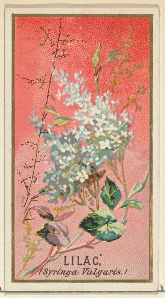 Editor: Here we have "Snowball (Viburnum Oputus)", a print from around 1890 by Goodwin & Company, part of their Flowers series for Old Judge Cigarettes. It's a petite piece; a tight composition featuring these globe-like flowers. There’s almost a vintage postcard quality to it. What do you find most striking about this particular image? Curator: Striking is an understatement, wouldn't you say? There's a curious, quiet energy. I think it's how the brown backdrop throws the snowy whites of the flower into sharp relief – practically buzzing off the surface, you know? It’s as if they’ve been caught in a sunbeam on a misty day. What's also really working, for me anyway, is the sense of suspended time. It’s from an era obsessed with cataloging nature – botanical illustration married with cigarette advertising, a curious dance between science, art, and, well, commerce. Does that reading chime with you? Editor: Absolutely! The intersection of art and advertising is something I hadn't fully considered, it definitely complicates the work and reveals layers of intention. Curator: Indeed. It begs the question: is this a love letter to nature or a savvy marketing ploy draped in aesthetic appeal? Maybe, rather magically, it manages to be both? Editor: It makes you wonder what people made of it at the time. The intention and context certainly influence the work so much. Curator: Precisely. It’s about seeing past the immediate charm, or accepting the charm AS part of the artwork's complicated cultural identity. I learned something revisiting this piece and seeing it from a fresh angle. Editor: Me too. I will definitely keep an eye out for works that, on the surface, seem rather innocent but perhaps possess other readings, hidden layers of intention.