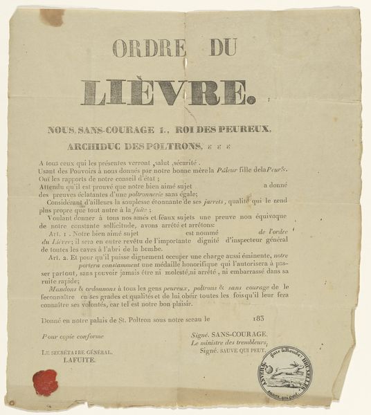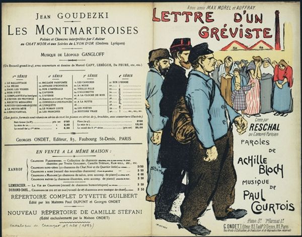 Editor: Here we have "Le Monde Nouveau," a lithograph by Théophile Alexandre Steinlen, created in 1896. It's immediately striking, with the stark contrast of the workers and the surrounding text, especially that bold title. What do you see in this piece, particularly within the socio-political context? Curator: This work speaks volumes about the socio-political climate of late 19th-century France. It served as a supplement for "La Petite République," a socialist newspaper. Note the portrayal of the laborers juxtaposed against the sheet music and text above. What does this suggest about the intended audience and the message Steinlen was trying to convey? Editor: It seems intended for the working class, almost like a call to action through accessible media. It is not only a newspaper supplement, but also a piece of art meant for a specific segment of the population. It brings to question who gets to be defined as consumers of art? Curator: Precisely! Steinlen's work blurs the lines between art and activism. By depicting laborers, he elevates their status within the visual landscape. Think about the rise of socialist movements during this period and the growing awareness of workers' rights. How does this image contribute to that broader cultural narrative? Editor: I guess it brings these ideas into everyday spaces and validates working class existence and identity in art. The image’s presence in a newspaper, meant to circulate in the city, positions these ideals into conversations and spaces often not affiliated with “fine art”. This accessibility feels radically democratic for the period! Curator: Absolutely. By embedding art within a newspaper, Steinlen democratizes access to art, challenging the established norms of art consumption and highlighting the crucial role of art in political discourse and the public sphere. It’s about who controls the image, and for what purpose. Food for thought, isn't it? Editor: Definitely! It makes me reconsider the spaces art occupies and its role in reflecting and shaping public opinion.