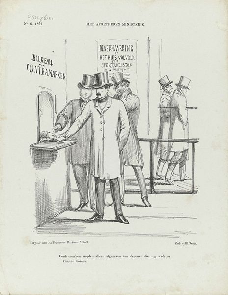 Erskine Nicol created this print titled "Homeward Bound (New York)", which captures a moment freighted with personal and historical weight. We see a man, likely an Irish immigrant, standing near a booth advertising passage back to Dublin. His gaze drifts towards the ships, perhaps contemplating return. Nicol, himself Scottish, lived through the immense social upheaval of the Highland Clearances which displaced so many. There's a quiet melancholy here, a sense of being caught between worlds. Consider the emotional complexities for those who left their homes due to poverty, famine, or political strife, only to find themselves longing for what they left behind. The presence of an advertisement speaks to the commodification of human movement, the packaging and selling of hope and belonging. This work gently unfolds the tensions between aspiration and reality. It invites us to reflect on the push and pull of identity, home, and the narratives we construct about where we belong.