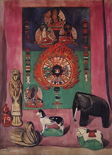 Abdul Mati Klarwein created this triptych, Crucifixion, with paint; I’m not sure when. The colours are rich, almost psychedelic, and it looks like he built the image up slowly, each brushstroke layered on the last. It’s like the painting grew organically, each part influencing the next. Looking at this piece, the first thing that strikes me is its density. The surface shimmers with gold leaf, but within that, the central image is like a teeming ecosystem. Tiny figures writhe amidst a complex tangle of branches, faces, and cosmic symbols. There's a section, just to the left of the central panel, where a figure seems to be emerging from a waterfall. It’s as if Klarwein is suggesting the constant flux of life, where transformation is the only constant. Klarwein reminds me a little of Hieronymus Bosch, another artist who wasn't afraid to pack his paintings full of fantastical imagery. Both artists seem to revel in ambiguity, suggesting that the world is far stranger and more complex than we can ever fully grasp.