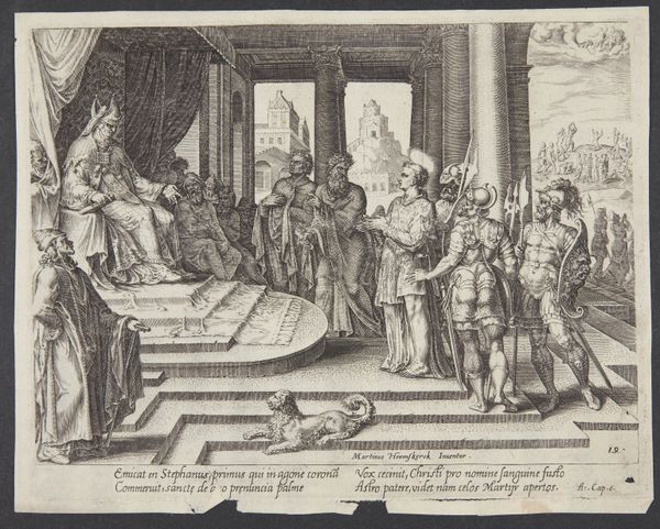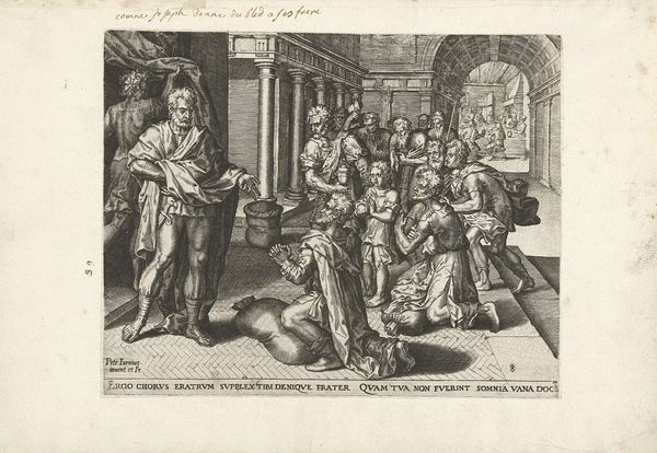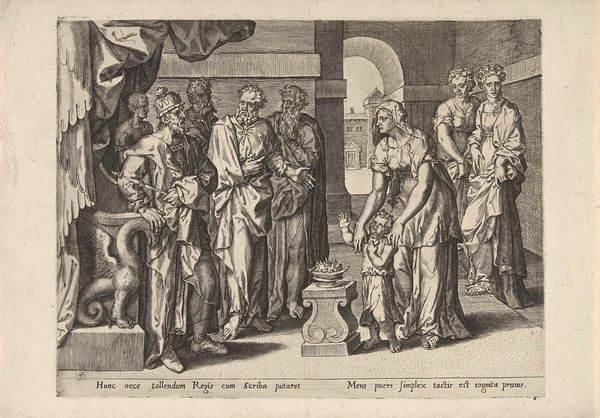 This engraving by Philips Galle, part of "The Story of Tamar and Amnon," captures a pivotal moment through potent symbolism. Jonadab, advisor to Amnon, leans in, whispering counsel. Observe Amnon, bedridden with lovesickness, a state depicted across cultures as both noble and debilitating. But what truly seizes the eye is the figure of the crouching monkey. In the Renaissance, the monkey was often a symbol of base instincts, a stand-in for lust and uncontrolled desires. You may find similar simian figures in morality plays or emblems, always signifying the untamed self. The presence of the monkey here is no accident. It points to the dark undercurrents of Amnon's desire, a primitive impulse lurking beneath the surface. It’s a visual shorthand, deeply embedded in the cultural psyche. This composition serves as a cautionary tale, a reminder of the timeless struggle between reason and passion, playing out in the theater of the human soul.