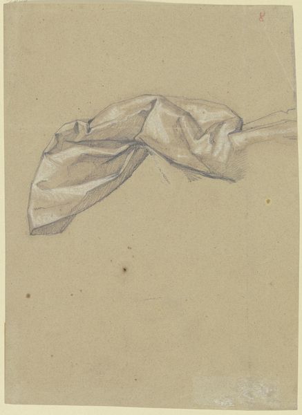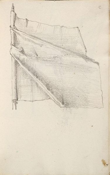 Curator: This pencil sketch by Edward Burne-Jones, titled "Banner," presents a study in drapery. Editor: It feels… unfinished, almost like a thought caught mid-flight. The shading gives it a weighty, tangible quality despite the empty space around it. Curator: Burne-Jones, deeply immersed in the Pre-Raphaelite movement, often explored themes of myth and medievalism. Understanding the banner's purpose within that context could provide crucial insight. Was it intended to symbolize power, resistance, or perhaps something else? Editor: It makes you wonder about the banner's message. Is it a symbol of triumph, surrender, or just a decorative flourish in a grand narrative? Curator: I think the simplicity in the rendering invites us to question the assumptions of its representation. Editor: Absolutely. I'm left pondering its silent, untold stories.