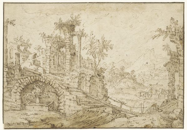 Jens Petersen Lund made this drawing, Landscape of the Italian Campagna, with pen and brown ink. This landscape reflects a long tradition of artists traveling to Italy, especially during the 18th and 19th centuries. The Italian Campagna, the countryside surrounding Rome, became a popular subject. Artists were interested in capturing the ruins of ancient civilizations and the picturesque qualities of the landscape. They often presented idealized versions of rural life, which obscured the socio-economic realities experienced by the people who lived and worked there. This drawing is a fine example of that trend. Lund made this drawing with the institutions of art in mind. It shows that he would have been aware of the aesthetic preferences of the art market and the expectations of his patrons. To gain a fuller understanding of this artwork, it would be useful to investigate the travel patterns of artists, the art market in Europe, and the cultural perception of Italy during this time.