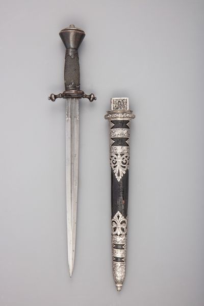 This is P. Steven's bayonet, its date of creation is unknown, but it stands as a stark reminder of military conflict. Bayonets like this one were widely used in the 18th and 19th centuries, a period marked by colonialism and the expansion of empires. Consider the experiences of soldiers, often from marginalized backgrounds, who wielded such weapons. They fought on behalf of nations, yet frequently remained disenfranchised. How did these individuals reconcile their roles as instruments of imperial power with their own identities and struggles? The bayonet becomes a symbol of the complex intersections of class, duty, and violence. We must also reflect on the lives impacted by this weapon: the colonized populations, the families torn apart, and the psychological wounds inflicted by war. The cold, metallic nature of the bayonet offers little comfort, instead it urges us to confront the uncomfortable truths of the past and to consider the human cost of military actions.