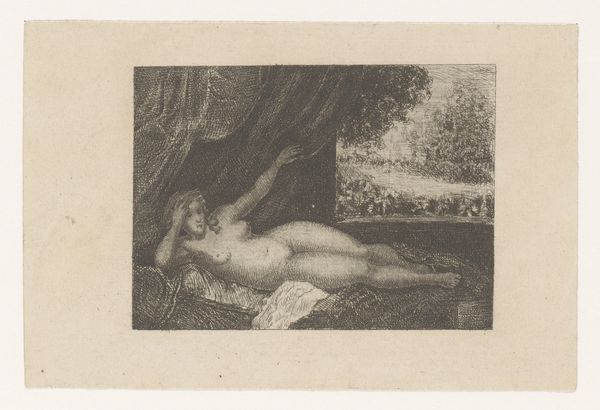 William Unger created this print titled "Jupiter en Danaë", now held at the Rijksmuseum, using etching techniques. The image depicts a scene from Greek mythology. Jupiter, disguised as golden rain, visits Danaë, who is confined to a tower. This print was made in the Netherlands, a country known for its rich tradition of printmaking. Unger was a key figure in the etching revival of the late 19th century, which saw a renewed interest in etching as an original art form. In this period, artists sought to elevate printmaking to the level of painting. Figures such as Unger critiqued the traditional art academy. His works were informed by those of old masters and he sought to emulate their work in print. Understanding Unger’s work requires us to consider the socio-economic context of the 19th century art world. Through archival research, we can analyze the institutional history and the social networks that supported Unger’s work. This kind of historical work enriches our understanding of this image, as it shows how cultural and social conditions can affect artistic production.