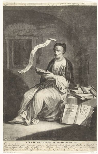 Gerard Valck created this mezzotint, titled *Sleeping Girl with Needlework in her Lap*. Valck worked in the printmaking medium of mezzotint, which involves roughening the entire plate with a tool called a rocker, and then smoothing areas to create an image. Here, the contrast between light and shadow, so characteristic of mezzotint, focuses our attention on the sleeping girl and her surroundings. Look closely, and you'll notice the tools of her trade: needle, thread, and scissors, laid out next to a candle that continues to burn as she sleeps. The work itself is front and center. The image reminds us that handwork, although often romanticized, is also physically demanding, and was often performed in poor lighting. The sitter may have simply dropped off due to exhaustion. But Valck’s mastery of mezzotint serves to remind us that all forms of making require time, skill, and a great deal of labor.