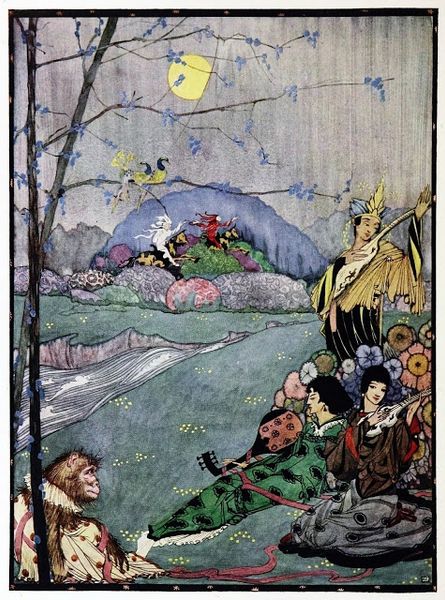 Artuš Scheiner crafted this illustration for Božena Němcová's fairy tales, presenting us with a knight encountering a giant fish. The fish, emerging from the dark waters, looms large, its prominent eye a symbol deeply rooted in folklore. Throughout history, the eye motif has signified knowledge, vigilance, and, at times, a lurking, unseen power. We see echoes of this in ancient Egyptian art with the Eye of Horus, a protective symbol, and in the monstrous cyclops of Greek mythology. The fish, too, is a symbol of transformation and the subconscious, often linked to the depths of the unknown. The knight, a figure of chivalry, stands on the precipice, a threshold between the known and the mysterious. This composition evokes a deep, subconscious tension, as the viewer is drawn into the moment of encounter, caught between fear and fascination. The image touches on our collective memory of such encounters, where the hero faces the primal forces of nature and the hidden realms of the psyche. These symbols, intertwined, create a cyclical progression, resurfacing through time, carrying with them layers of cultural and psychological weight.