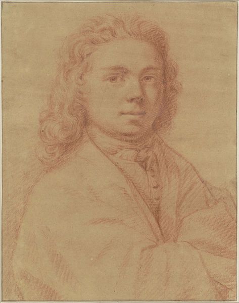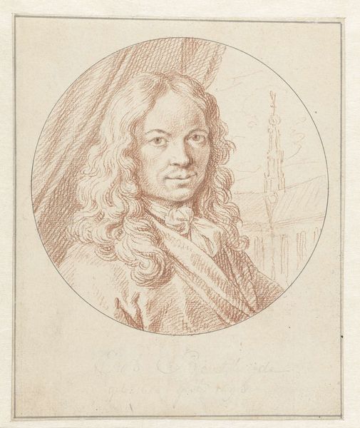 Curator: This is "Portret van Mattheus Brouerius van Nidek," a drawing crafted around 1700 by F. Berkhuys. It’s a compelling example of Baroque portraiture using charcoal. Editor: Striking! The use of line, the tonal variations of charcoal, give a somewhat somber yet refined mood. I find that the softness in the wig contrasts with the stark realism in the subject’s gaze. Curator: Yes, the texture achieved through charcoal is remarkable. Notice how Berkhuys employs hatching and cross-hatching to sculpt the form, creating depth and volume particularly in the drapery and that extravagant wig so typical of the era. Editor: Thinking about the Baroque era, the flamboyance evident in costume reflected a complex negotiation of social and political power. The artist has achieved an intriguing psychological study of status and individual personality. Who was this Mattheus Brouerius van Nidek? Curator: He was a prominent figure of his time, though not as famous as some of his contemporaries. These kinds of portraits served the essential function of affirming and solidifying social status. It was essential for demonstrating the persona. Editor: The texture of the charcoal on what I presume is laid paper…It lends a certain rawness to this demonstration of social dominance, it really does add a captivating layer to the drawing, a sort of… imperfection, almost. Curator: Absolutely. That subtle tension elevates the portrait beyond mere documentation of appearance. If you follow the angle from his left shoulder to the button details of his costume, that area really gives a compelling narrative. Editor: Considering the role of portraits during this period—displayed in private homes or public offices, it prompts a question: How did portraits influence social standing and perceptions of the sitter within their own community and further afield? Curator: Precisely! That question takes us into a discussion about Baroque art’s overall societal functions. Editor: A study of cultural values embedded in material choices that echo beyond initial observations. The semiotic reading offers just one possible conclusion. Thanks for highlighting it. Curator: And thank you, this formal assessment has deepened my appreciation.