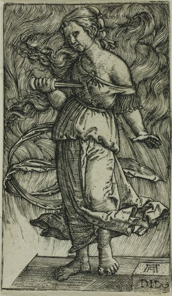 Albrecht Altdorfer made this tiny print of Horatius Cocles leaping into the Tiber using the intaglio process of etching. The image is formed by lines incised into a metal plate, which would have been a skilled job requiring painstaking work. Look closely at the figure of Horatius. Altdorfer has used many tiny parallel lines to give the impression of light on his armor. But see how these lines change direction to describe the movement of the water. And the way the hatching becomes more dense in the distance, to create a sense of atmospheric perspective. The act of etching requires not only technical skill but also a deep understanding of materials. In a world before photography, prints like this one were relatively affordable, and helped disseminate classical stories like that of Horatius Cocles to a wider audience. Altdorfer's skill and the relative ease with which prints can be reproduced meant that art was no longer just for the wealthy elite. The material and process are therefore crucial to understanding the print’s original cultural impact.