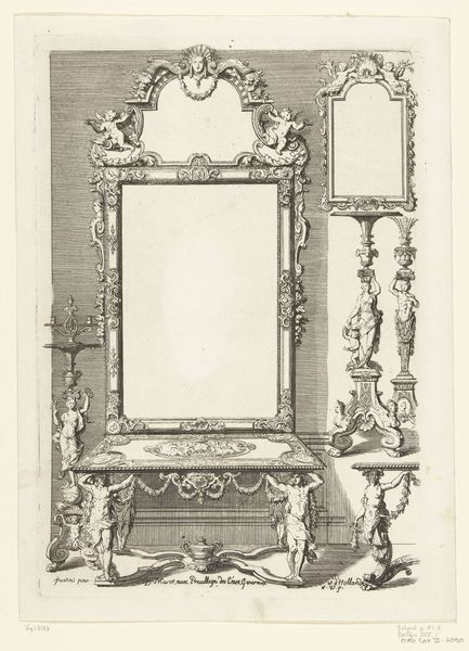 Abraham Bosse created this engraving of a chimneypiece decorated with a mirror at an unknown date. Bosse was a French artist, mainly active as a printmaker, and his engravings offer a fascinating glimpse into the material culture of 17th-century France. This design for a chimneypiece reflects the growing importance of domestic comfort and display in early modern Europe. The incorporation of a mirror above the fireplace not only served a practical function but also symbolized wealth and status. The fireplace itself was a focal point for social gatherings within the household, highlighting the performative aspects of domestic life. To understand this image fully, one might turn to period architectural treatises, inventories of household goods, and social histories of domestic life in 17th-century France. These resources help us interpret the visual codes, cultural references, and historical associations embedded in this intricate design, revealing the social and institutional contexts that shaped its creation and reception.