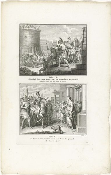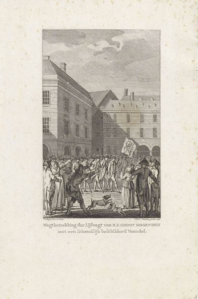 Reinier Vinkeles etched this print, “Opstand van het Kaas- en Broodvolk,” depicting a riot in Haarlem in 1492. The central image shows a chaotic uprising: men with clubs attack a fallen figure while others wave banners. The clubs wielded by the mob are primitive weapons, symbols of raw, untamed anger. Banners representing local affiliations flutter in the background, illustrating the collective nature of the revolt. Notice how such symbols of uprising recur throughout history, from ancient peasant revolts to the French Revolution. The club, a simple tool turned weapon, transforms into a potent emblem of the oppressed rising against authority. This is reminiscent of the classical motif of the "Fasces," a bundle of wooden rods signifying power and unity, which can be seen in Roman art. But here, the singular rod becomes a bludgeon, a symbol of violent action. The psychological weight of such imagery is profound. It taps into a collective memory of struggle and resistance, evoking powerful emotions tied to the human desire for justice and equality. The act of bearing arms or a simple club has taken on new meanings in our own time with different groups brandishing them in new ways. Consider the image as a potent reminder of the cyclical nature of history, where the yearning for freedom manifests again and again.