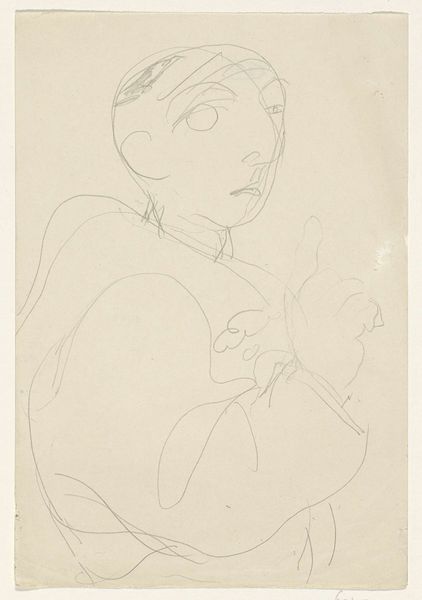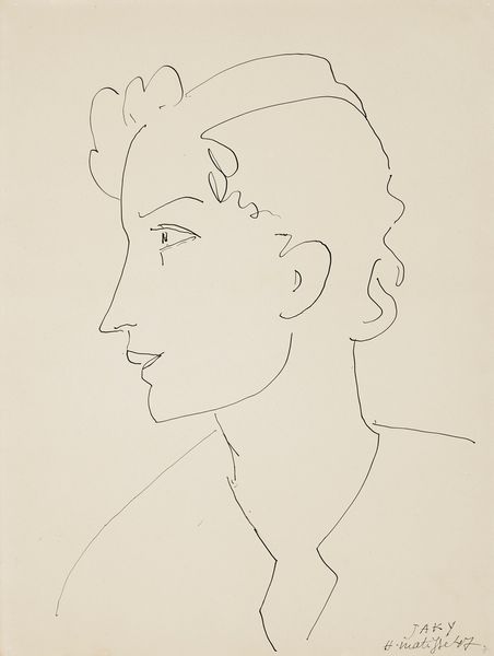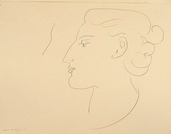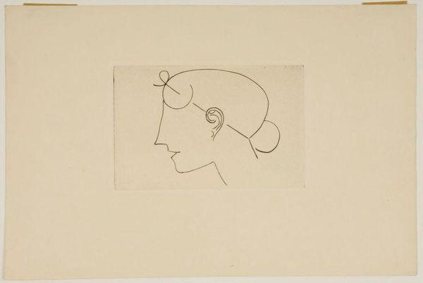 Editor: This is Elie Nadelman's "Woman's Head in Profile (left)" and it's incredibly simple, just a few lines, yet so evocative. What do you see in this work? Curator: The simplified forms evoke archaic Greek sculpture, don't they? Nadelman seems to be reaching back to a primal idea of feminine beauty, stripping away detail to reveal an essential form. Notice how the hair, almost cloud-like, contrasts with the sharp, classical profile. Editor: Yes, I see that now. It's like he's playing with memory and history. Curator: Exactly! The image becomes a vessel, filled with centuries of cultural meaning that we project onto it. What does it make you think about? Editor: I hadn't considered all the historical connections before. Thank you! Curator: It’s always rewarding to see how symbols transcend time.