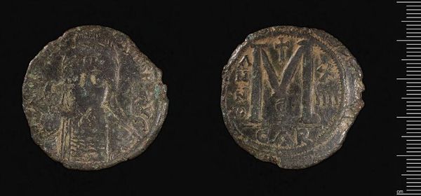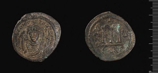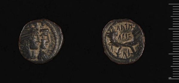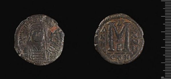 Curator: Here we have a Decanummium of Anastasios I, from Constantinople. It is a small bronze coin, currently held in the Harvard Art Museums. Editor: The coin looks like it’s whispering stories of resilience and endurance – so worn, yet with such clear images. Curator: Precisely! The coin, issued during Anastasios I's reign, served not just as currency but as a means of projecting imperial power throughout the Byzantine Empire. Editor: I see the faint outline of the emperor. Imagining that same face on thousands of coins, influencing lives and trade… it’s pretty powerful. Curator: It underscores the importance of imagery in political communication. Currency became a portable advertisement for imperial authority. Editor: It's a tangible link to a distant past – you can almost feel the weight of history in your hand. Curator: Absolutely, examining this coin allows us to contemplate the intersection of art, economics, and political power in the Byzantine era. Editor: It really does invite us to ponder what we choose to immortalize, and how the everyday objects we create carry our stories forward.