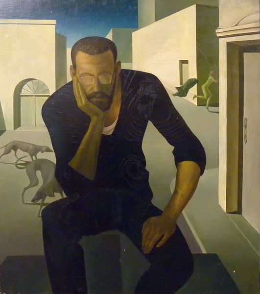 Dobri Dobrev's painting shows the Iconographer Atanas Kavrakov at work with paint on canvas. It’s really about how the artist uses the brush to create the image, from sketching out the figures in the background to layering in the thicker paint for the figure of the iconographer. I keep coming back to the way Kavrakov's eyebrow is cocked as he stares out at us, like he's judging our own artistic efforts, or maybe just wondering when we're going to get back to work! The way Dobrev modeled the volume of the arm, the fall of the shirt, it’s not trying to trick us into thinking it’s real, but asking us to imagine its realness. The brown and blue palette is pretty subdued, but there’s this energy in how the paint is applied, not overworked, it's all about the movement of the brush. It feels like a cousin of Lucian Freud’s portraits, especially in the way it captures this quiet intensity. Like Freud, Dobrev is interested in the vulnerability of the human form, and the messy, imperfect reality of being alive.