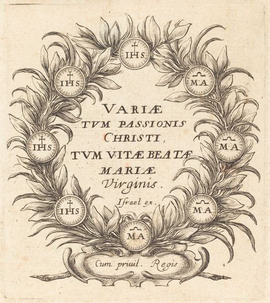 This is the title page of De la Monarchie du Verbe Incarné, made in 1638 by Abraham Bosse. It's an engraving, meaning that the image was incised into a metal plate, likely copper, and then printed. Look closely, and you’ll see the crisp, precise lines achieved with the burin, the tool used for this process. This wasn't just a reproductive technique; engraving had its own aesthetic, prized for its clarity and detail. The labor involved was considerable: each line carefully cut, requiring immense skill and time. In Bosse’s era, printmaking was crucial for disseminating ideas and images. This particular print, as a title page, served as a visual introduction to the book, signaling its themes of power and divinity. Considering the labor and skill involved in its production, this print challenges our typical distinctions between craft and fine art. It’s a reminder that even seemingly "minor" arts can carry significant cultural weight.