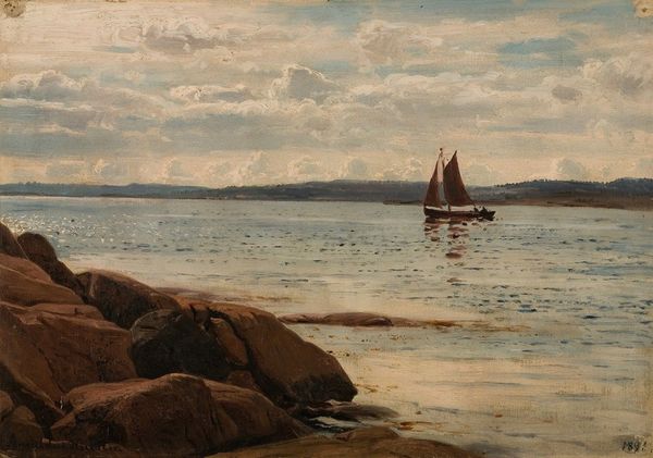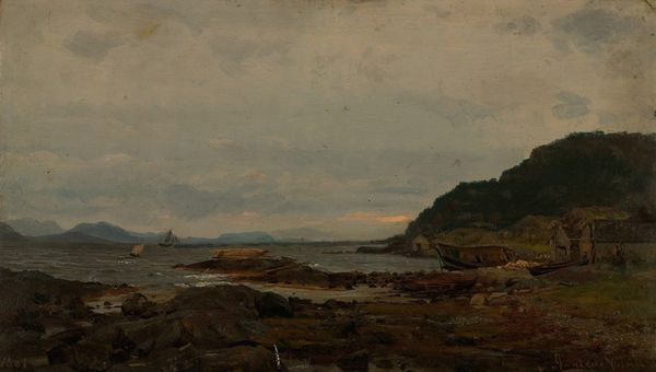 Amaldus Nielsen painted 'Fra Beiningen, Skudesnes' in Norway using oil on canvas, but the exact date is unknown. The image captures a serene coastal landscape, which reflects Norway's strong connection to its natural environment, something deeply ingrained in its cultural identity. The scene's calm sea, the rocky shore, and the distant land all evoke a sense of tranquility and contemplation. During the 19th century, Norway was experiencing a rise in national romanticism, with artists often turning to their landscapes to express a unique cultural identity. Nielsen’s work fits into this context, celebrating the Nordic landscape through a realist lens, while omitting the social realities of the period. Understanding Nielsen’s work requires looking into the art institutions and the cultural values of his time. Art historians delve into archives, study contemporary critiques, and examine the social conditions that influenced artists like Nielsen. This way, we understand art as something that evolves with society, reflecting and shaping the values of its time.
