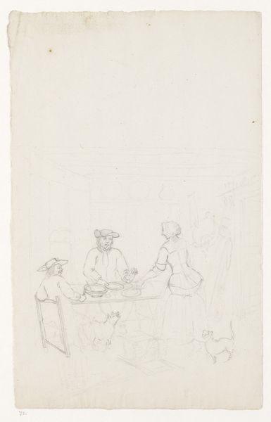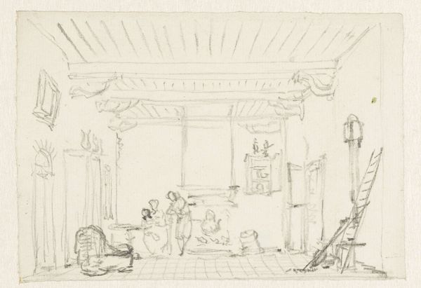 Pieter Bartholomeusz. Barbiers created this drawing, "Hugo de Groot verbergt zich in zijn boekenkist," with pen in gray ink and brush in gray wash. Notice how the composition is structured around the central book chest, its linear form anchoring the scene. Figures are sketched with swift, assured lines, conveying a sense of urgency and drama. The light gray wash gives a tonal dimension, subtly defining forms and spaces. The architectural setting and figures' gestures suggest a moment of clandestine activity, challenging conventional notions of public versus private, safety versus danger. Through this piece, Barbiers explores the tension between visibility and concealment, questioning the nature of power, knowledge, and resistance. It is through the interplay of line, form, and light that the drawing invites us to contemplate these deeper themes, prompting ongoing interpretation.