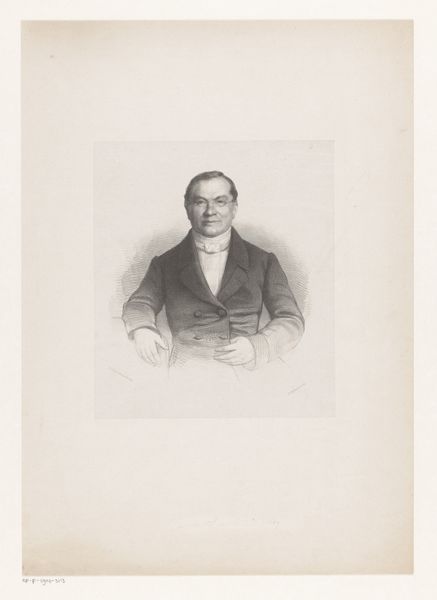 Editor: Here we have Adolphe Mouilleron's "Portret van historicus Nikolay Kostomarov," made sometime between 1845 and 1881 using graphite. It’s quite a serious portrait; the historian looks formidable with his arms crossed. How do you interpret this work? Curator: Well, considering Kostomarov's work focused on Ukrainian history and identity within the Russian Empire, this portrait becomes quite charged. We can read his stern expression not just as a personality trait, but as a quiet defiance against the suppression of Ukrainian culture. His gaze almost dares us to acknowledge the complexities of his identity within that political landscape. Editor: That's fascinating, I hadn't considered that. So you're saying the portrait isn't just a likeness, but a statement? Curator: Precisely! Mouilleron, as the artist, would have been making conscious choices about how to portray Kostomarov. The formal pose, the controlled use of graphite, all contribute to an image that simultaneously acknowledges societal expectations of a prominent figure, while subtly hinting at underlying tensions and the struggle for cultural recognition. How might contemporary post-colonial theory help us to reframe our interpretation? Editor: So it’s almost as if the artist is using the constraints of academic art to hint at something more rebellious? It really makes me think about who has the power to define representation. Curator: Exactly! And how artistic choices, even seemingly simple ones, can carry significant weight within broader social and political power structures. Considering Mouilleron's position as an artist in that era, do you think the piece could offer us insight on their engagement with the cultural context and political situation in the region? Editor: I see this work now through completely different eyes. Thank you! Curator: Likewise; reflecting on visual history in this manner gives artworks contemporary relevance, creating dialogues across centuries.