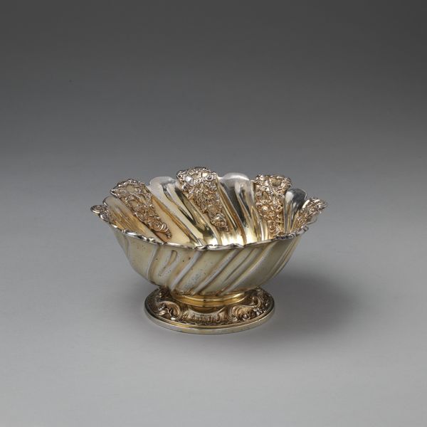 This miniature cake basket was made of silver by Nicolas Hearnden in England sometime around the late 18th or early 19th century. The basket reflects a society that was obsessed with etiquette and display, especially within the rituals surrounding tea and dessert. Objects like this basket show us how wealth and status were communicated through the ownership and use of specialized items. Silversmiths like Hearnden catered to the tastes of the elite, creating objects that were not only functional, but also symbols of refinement and social standing. The delicate craftsmanship and precious material speak to the values placed on luxury and exclusivity during this period. To fully understand this object, we can turn to sources like trade records, guild archives, and period etiquette manuals. These resources reveal the complex social codes embedded in objects like this miniature cake basket. This basket reminds us that art is deeply entwined with the social and institutional structures of its time.