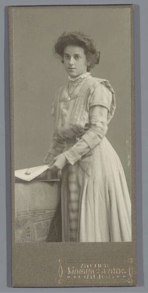 This portrait of an unknown woman with a book was made by Atelier Apollo, Leipzig. It shows a woman in a photograph, encased in glass and framed with metal. Photography in the late 19th century was a complex process, involving coating glass plates with light-sensitive emulsions. The photographer, or studio assistant, had to be skilled in chemistry and optics, and the sitter had to remain still for extended periods, which speaks to the labour and skill involved in capturing an image. The material of photography itself–the glass plate, the chemicals, the paper–was becoming increasingly standardized, contributing to photography's rise as a consumer product. The framing also adds to our understanding: By encasing this photographic print, it suggests a degree of preciousness, something to be cherished and preserved. Considering the materials and processes used in its creation reveals the cultural values placed on image-making at the time, and challenges the distinction between art and industrial production.