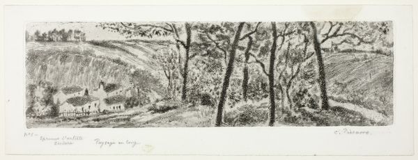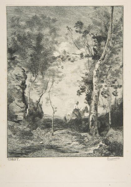 Curator: This is Rodolphe Bresdin’s etching from 1880, titled "The Forest of Fontainebleau," presently residing at The Art Institute of Chicago. Editor: Dense! Almost claustrophobic, in a way. The textures are incredibly intricate. What's particularly striking is the almost complete lack of breathing room in the composition. Curator: Indeed, the forest depicted rejects any notions of classical, idealized landscape. Instead, it embraces a realism that hints at Romanticism in its sublime density. Editor: Tell me about that density. How does the composition direct us, if at all? Curator: Note how the layering of lines and textures, achieved through meticulous etching, creates a deep visual field while simultaneously flattening the image. Our eyes struggle to find a focal point, as if lost within the woods themselves. It recalls notions around Baudelaire and flânerie... being adrift, aimless. Editor: You know, there is something evocative of 17th-century Dutch landscape painting here too. Except, there’s no discernible narrative. Where are the people? Even the light is diffuse, rejecting any singular perspective. It’s almost a metaphor for something… the impenetrable quality of the forest reflecting an unknowable internal space. Curator: Fascinating thought. It could even speak to Bresdin's own difficult life. Socially marginalized and an outsider, he created art reflecting that alienation through this embrace of natural wilderness as an unknowable labyrinth. Consider, too, the choice of printmaking. Accessible as an artistic medium to produce in some respects, while still labor intensive. A rejection, perhaps, of artistic establishment that could suggest something beyond just a formal analysis. Editor: Yes, this complexity moves us beyond merely depicting a forest. This piece almost demands psychoanalysis of the artist and contemporary viewers. There's almost a melancholic feeling despite, or perhaps because of, its intensity. It has an uncanny ability to disturb while simultaneously drawing one into its mesmerizing patterns. Curator: Ultimately, I suppose this print shows us how formal mastery combined with socio-historical awareness can elevate a mere landscape to the status of a mirror held up to human consciousness. Editor: A complex encounter that will leave us reflecting on nature, the mind and Rodolphe Bresdin for a good while after. Thank you.