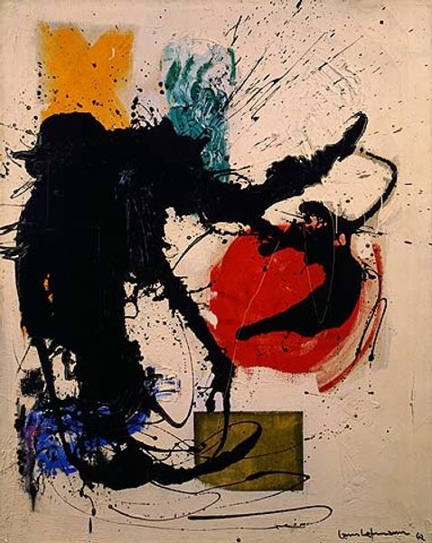 James Brooks made 'Merrygandering' sometime in the mid-twentieth century, using oil on canvas, and the process feels almost like a dance. There's a real physicality here, in the way the paint is dragged and layered. Look at the big black form on the upper left, how it bleeds into the white, almost like ink spreading on wet paper. Then there's that swipe of blue – so direct, so confident, but it's all balanced with these delicate, almost hesitant marks. It’s this combination of control and abandon that gets me going. I love the way that a small fleck of red animates the top left corner, and how the linear marks seem to anchor the composition. For me, 'Merrygandering' has a connection to de Kooning's work from the same period, but it’s also very much James Brooks' own thing. The joy of art is that we can all have a conversation with the past and make something totally new.