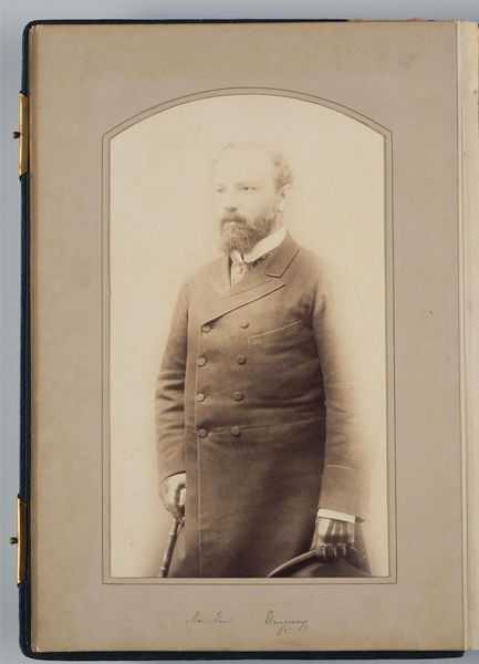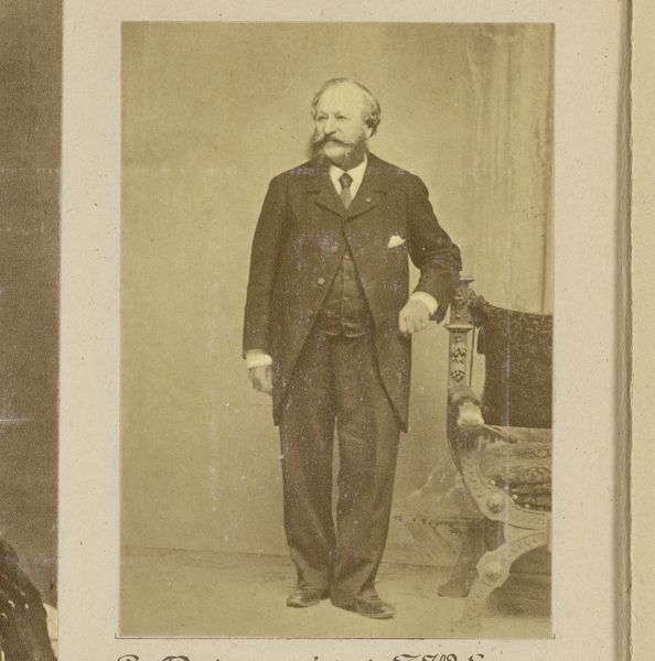 Curator: This portrait depicts J.G. do Amaral Valente, a Brazilian delegate. It was captured by Mathew Brady. Editor: He has a certain air of quiet dignity, doesn't he? The tones are so soft, like a memory fading into sepia. Curator: Indeed. Brady's portraits, particularly of figures like Valente, offer a window into the socio-political landscape of the 19th century, revealing the networks of power and influence at play during that era. Editor: The way he holds his hat... almost like an offering, or a shield. I wonder what stories it could tell. Curator: Consider also the gaze, the way the sitter presents themself. It's staged, of course, but that act of staging is itself revealing. Editor: Right, it's a performance, and we're the audience, still watching. A silent, powerful exchange across time.