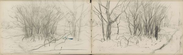 Anton Mauve made this landscape with trees using graphite on paper. The quick strokes and simple lines are what define the inherent qualities of this work. The artist employed a technique known as sketching, a process involving rapid drawings to capture the essence of a scene, focusing on form, composition, and overall impression. The sketch showcases a landscape with trees, rendered with a sense of immediacy. The texture of the paper, though subtle, adds depth to the drawing, enhancing the overall visual experience. Mauve's use of graphite creates a range of tones and values. Mauve engages with a long tradition of landscape drawing, where artists observe and interpret nature. His loose strokes and attention to light and shadow reflect his training and skill, underscoring the time and labor involved in mastering this medium. The work challenges the divide between fine art and craft, showing that skill and expression coexist across different creative practices.