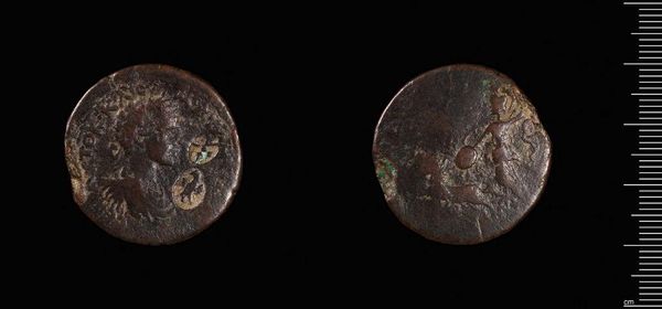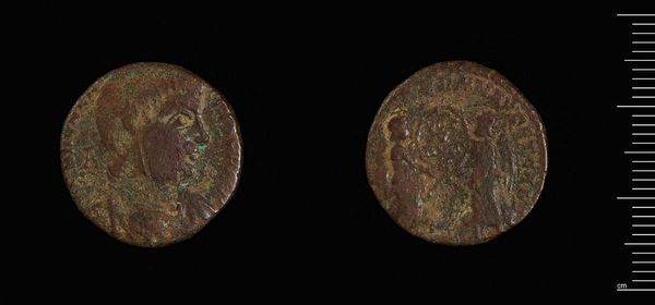 Curator: This is a coin from Mallos under Gordian III. Look closely at the material. Bronze, oxidized over centuries, feels substantial in its presence. Editor: It appears quite worn, almost smoothed. I wonder what hands it has passed through, what transactions it facilitated. Was wealth distributed equally in Mallos? Curator: Roman currency often featured idealized images of emperors, projecting power, but also standardizing identity across a vast empire. The creation of a shared consciousness. Editor: It also speaks to the labor involved. Mining the metal, the process of minting, the distribution of coinage – a whole network of exploitation undergirds this object. Curator: Right, and it's a form of propaganda. The emperor's image, his authority, is literally stamped onto the means of exchange, reinforcing hierarchy at every transaction. Editor: Its eroded surface now is such a contrast to the original intent. So much gets lost, or perhaps transformed, in the course of material history. Curator: Agreed. It shows the fallibility of empires. These coins are material traces of power, but time and use have had an impact. Editor: Definitely gives you pause to consider an empire built on bronze.