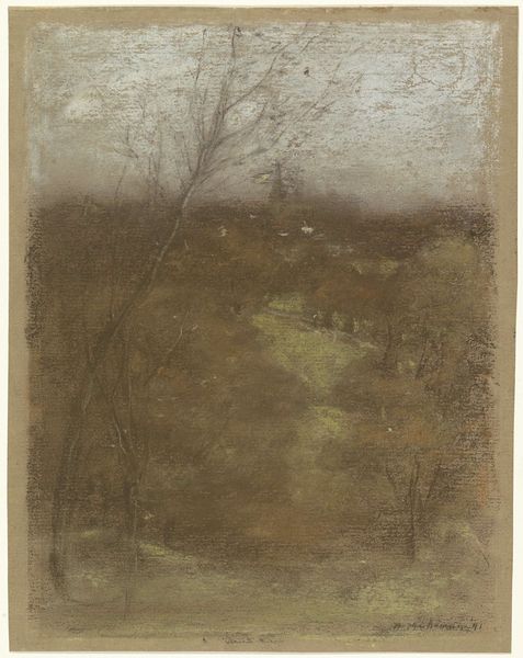 Frederika Henriëtte Broeksmit made this small print, Wilgen aan een sloot bij avond, probably in the early twentieth century. It is made with a kind of dusky, muted palette, that feels like it’s been mixed from lots of greens and browns. Look at the way the dark greens settle in the lower portion of the print, denser and more intense. It's almost like you can feel the dampness rising from the earth. This density gives way to a lighter, more atmospheric haze toward the top, evoking that feeling when the sun has just set, and the world is filled with a soft, diffused light. The textures seem to build up in layers, revealing the material process through strokes and gradations. It reminds me a bit of some of the Tonalist painters, George Inness for example, who were also interested in capturing the mood and atmosphere of a scene rather than a direct representation. Like a half-remembered dream, this piece invites you to bring your own memories and imaginings.