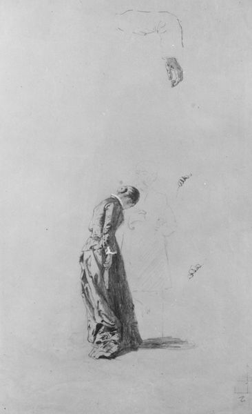 Curator: Gavin Hamilton’s “Seated Female Figure” presents us with an intriguing study in graphite. The dimensions are modest: only about 20 by 17 centimeters. Editor: There's a melancholy that emanates from the piece. The draped figure, the downcast gaze—it all speaks to a sense of resignation. Curator: Hamilton, active in Rome, straddled the worlds of art dealing, archaeology, and history painting. This drawing, though, seems more intimate, perhaps a preparatory study. Editor: Consider the classical drapery; it's not just fabric, it's a symbolic language, harking back to antiquity, imbuing the figure with a timeless quality. Curator: The paper itself, with its visible aging, becomes part of the artwork's narrative, adding layers of historical context. Editor: A poignant reflection on the enduring power of the female form as a vessel for emotional expression. Curator: Indeed, a testament to how the very materials and techniques employed contribute to an artwork’s lasting impact. Editor: A subtle reminder of how symbols echo through time.