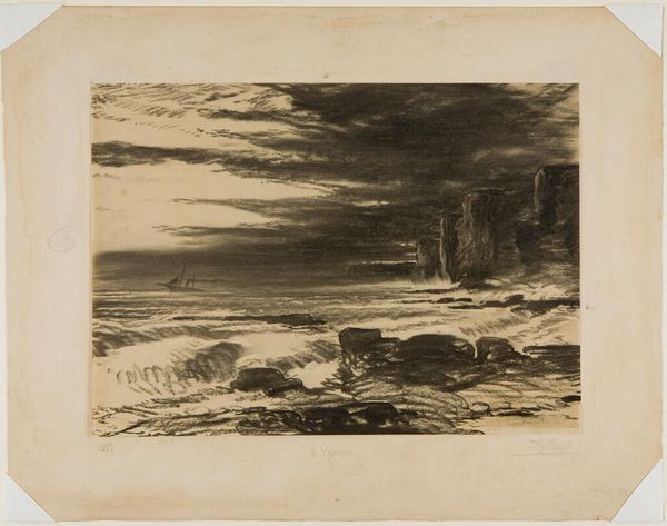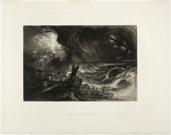 David Lucas created this mezzotint titled ‘Weymouth Bay’. The tempestuous sky dominates the scene, a motif that has resonated across millennia, symbolizing nature's overwhelming power and humanity's precarious existence. Consider how such skies appear in ancient Greek depictions of Zeus hurling thunderbolts, or even in Renaissance paintings of the Apocalypse. The dramatic clouds convey an emotional turbulence that speaks to our deepest fears and anxieties. The lone figures on the beach, dwarfed by the immensity of the landscape, recall the romantic era’s fascination with the sublime. This recalls Caspar David Friedrich’s wanderers silhouetted against monumental landscapes, and reminds us of humanity's ongoing negotiation with the forces that shape our world. This image is a powerful reminder of the cyclical nature of artistic expression, wherein primal symbols resurface, transformed and reinterpreted.
