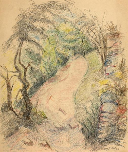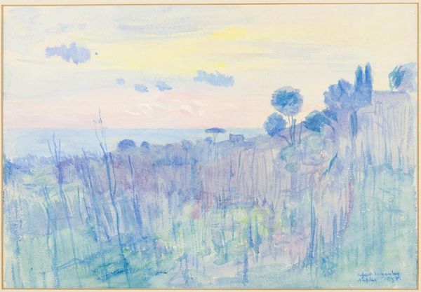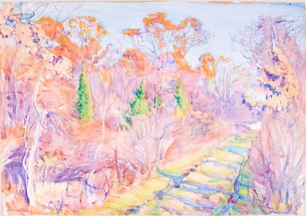 Pierre-Auguste Renoir made this watercolor Landscape with Trees; the precise date is unknown. Watercolors involve a very direct process. Pigment is mixed with water and applied to paper, resulting in a translucent effect, layer upon layer. The immediacy of the process is key, as it allows artists to capture fleeting moments and sensations. Renoir’s work reflects a quickness, with colors blending wet-on-wet. The way he has loaded the brush and applied it to the page is a clear indication of his technique. The white of the page remains visible throughout the artwork. This adds to the painting’s sense of lightness and airiness. Although Renoir is not known for his works on paper, watercolor was often used by Impressionist artists to create studies for larger works. However, Landscape with Trees is not a study for a larger work, but a finished artwork, which has been exhibited in a museum. This is a reminder that the supposed hierarchy between art and craft is just a construct, and not necessarily how artists themselves see things.