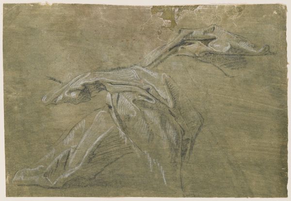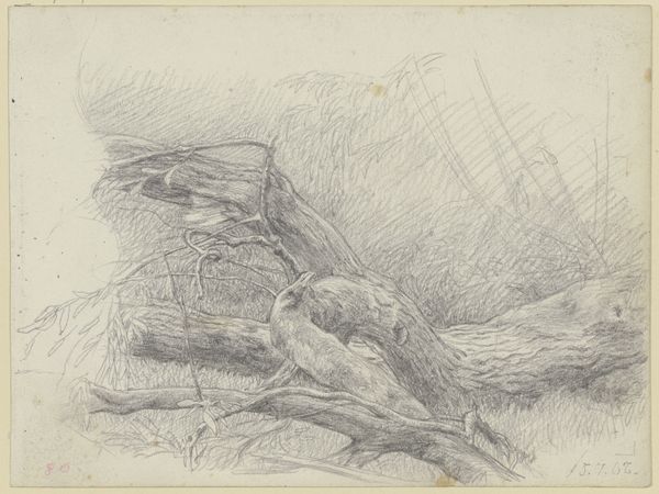 Editor: This is Winslow Homer’s "Tree Roots, Prout’s Neck," created in 1884 using charcoal. The stark contrast between the bleached roots and the dark, scratchy hillside creates a dramatic effect. What do you see in this piece? Curator: Well, let’s consider the materials themselves. Charcoal is a burnt material; here, it renders not just an image, but perhaps evokes the very process of decomposition and regeneration. The roughness contrasts with the smooth paper. How might the availability of charcoal and paper at that time have shaped Homer's practice and subject matter? Editor: That's interesting. I hadn’t thought about the accessibility of materials influencing the work itself. It feels very immediate, like a quick study, but maybe the choice of charcoal was deliberate. Curator: Exactly. Think about what charcoal represents: a residue, a byproduct of fire. Homer isn’t just depicting roots; he’s engaging with the very processes of nature, with growth and decay intertwined. What statement is Homer making through this use of material and process, connecting labor to this landscape? Editor: So, by focusing on the raw materials and the act of drawing itself, we can read the drawing as an engagement with the natural world and the labor involved in representing it? I never thought about it that way before. Curator: Precisely. By paying attention to material and context, we see Homer grappling with the social and natural forces that shape our perceptions. Editor: That gives me a lot to consider about not just Homer’s work but the art-making process in general! Thanks! Curator: My pleasure. Examining the materiality is crucial to seeing art as a cultural product.