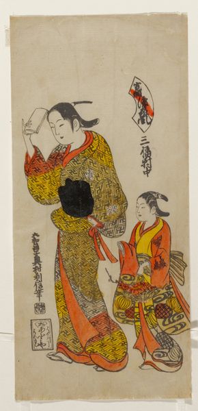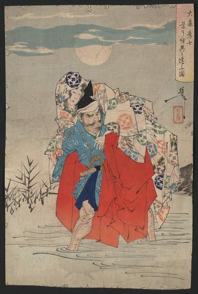 This woodblock print of Ebisu and a woman was created by Utagawa Toyohiro in Japan. It's a great example of *ukiyo-e*, or "pictures of the floating world.” Woodblock prints like this were made through a collaborative process. First, the artist would create a design. Then, skilled wood carvers transferred the image onto separate blocks, one for each color. Finally, printers applied these blocks to paper, layering the colors to build up the final image. This division of labor allowed for mass production, making art accessible to a wider audience. But it also meant that the artist's hand was mediated through the skills of other artisans. The flat planes of color, the bold outlines, and the stylized forms are all characteristic of this process. *Ukiyo-e* prints were not just beautiful objects; they were products of a complex system of production, distribution, and consumption that shaped Japanese culture and its global presence. So, the next time you see a woodblock print, remember the many hands that contributed to its creation, and the social context that gave it meaning.