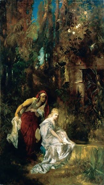 Nicolas Poussin painted "Midas at the Source of the River Pactolus" in the mid-17th century. The scene presents a study in contrasts, both in composition and tone. The painting is anchored by the strong diagonal formed by Midas and the river god, which divides the canvas between the darker, more chaotic left side, and the calmer, more ordered right. Poussin frames Midas as a figure of classical authority, draped in voluminous robes, his posture and expression suggesting detachment, almost indifference. In contrast, the river god kneels, his body rendered with dynamic energy and soft flesh tones, embodying a sense of desperation. The artist plays with light and shadow to accentuate these differences, highlighting the opulence of Midas’ garments against the river god's exposed form. The painting uses the symbolic language of myth to explore themes of power, redemption, and the consequences of unchecked desire. Poussin challenges us to look beyond the surface narrative, prompting questions about the nature of wealth, the dynamics of supplication, and the possibility of transformation.