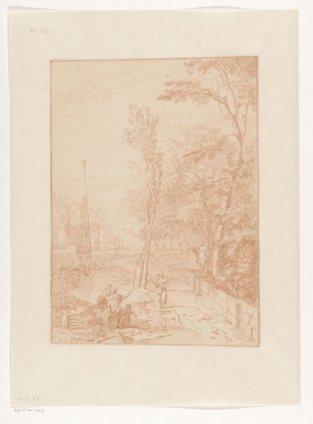 Editor: Here we have Camille Corot's "The Belfry of St.-Nicolas-les-Arras," made with pencil sometime between 1871 and 1872. The mood is so gentle. The scene is soft, rendered with delicate strokes that portray a pathway flanked by slender trees, leading to a distant church tower. What strikes you about this particular landscape? Curator: What I see here, beyond the obvious tranquility, is Corot grappling with the rapidly changing social landscape of France post-Franco Prussian war. Consider the belfry itself; historically, these structures weren’t just religious, but served as watchtowers, signaling both warnings and communal gatherings. The lone figure walking toward it... is he a symbol of resilience? Or perhaps searching for a communal identity after upheaval? What do you think of the light and shadow at play in relation to societal hierarchies present at the time? Editor: That's fascinating, the idea of the belfry as a multi-layered symbol. I hadn't considered that. The figure does seem intentionally ambiguous, their back turned to us. And thinking about the light and shadow...there's a real contrast, a tension there between hope and lingering darkness. It also feels like the social commentary is subtle though, would many people at the time have picked up on this, or is this more of a contemporary reading? Curator: Precisely. Corot’s choice of subject matter, a seemingly innocuous landscape, becomes a site for quiet resistance, questioning the status quo in a time of intense rebuilding. It’s that very subtlety that allowed him to critique without being censored. What do you see as Corot's message to contemporary viewers of his art and his society? Editor: That’s incredible, you’ve really illuminated the depth of this piece! I initially saw a pleasant scene, but now I recognize the subtle but important commentary. I will remember to look closer! Curator: Absolutely, art is about seeing what exists, and thinking about what does not. We have to interpret and question every aspect of the piece, from technique to topic.
