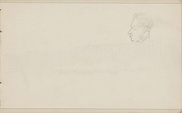 Curator: This delicate pencil drawing is entitled "Head of a Child", attributed to Johanna van de Kamer and created sometime between 1883 and 1922. Editor: There's a quietness to it, almost reverent. Like a fleeting thought captured on paper, ephemeral and pure. It reminds me of sketchbook practice. Curator: Absolutely. Van de Kamer was masterful at distilling the essence of her subjects with remarkable economy. We see it in the simple outline, which prioritizes capturing a sense of youth rather than lifelike anatomical perfection. Editor: Indeed, if we observe how the contours define the cranial mass versus the almost negligible indication of the neck and shoulders, it’s clear that she's exploring ideas of form more than the illusion of three-dimensionality. The line itself is doing the heavy lifting, you might say. Curator: The empty space also speaks volumes, doesn’t it? It makes me feel the boundless potential, but also vulnerability, that surrounds new life. The artist may have been focusing not only on depicting an accurate portrait, but on creating an atmosphere around that form. The emptiness magnifies the preciousness. Editor: Agreed. That stark contrast certainly forces the viewer's focus, underscoring both presence and fragility. But look, for example, at the loose hatching; it subtly evokes both the soft texture of hair and the nascent character, a "head" full of unformed thought. Curator: I suppose ultimately the work asks us to confront the mysteries of human existence, as told through minimal mark-making. Van de Kamer gives the impression that this single view represents both a unique individual and a stand-in for universal youth. Editor: What began as a mere sketch is actually so thoughtfully composed. Curator: A fine testament to the enduring strength found within seemingly simple means.