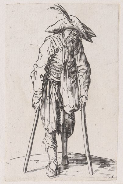 Isaac Weissenbruch made this work titled ‘Man with Thigh Boots and a Rope’ with pen in the 19th Century. The figure is presented in full, and the image is dominated by linear patterns and contrasts that evoke a certain depth and texture. Weissenbruch’s work is intriguing, mainly due to its concentration on formal elements and use of structuralist principles. The attention to detail in the man’s attire and the textures created through dense, rhythmic lines point to a deep engagement with the semiotics of representation. The high boots, the rope, and the laced vest function as signs, each hinting at stories of labor, resilience, and a connection to the natural world. The artwork is also notable for what it destabilizes: It doesn't provide a romantic vision of rural life but presents a matter-of-fact depiction of a working man. The composition and attention to detail serve not just aesthetic purposes but engage in a broader cultural discourse about the dignity of labor and the realities of the 19th-century worker.